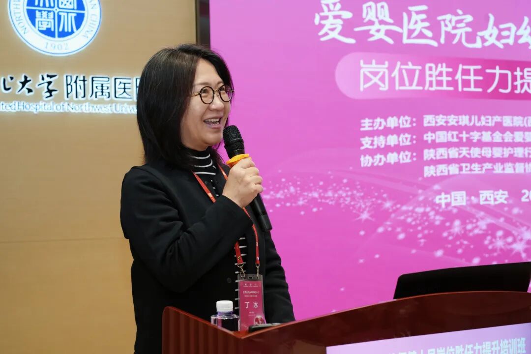 中国红十字基金会爱婴医院发展基金管委会副主任丁冰为开幕式致辞。她肯定了爱婴医院在制度建设、母婴安全管理、服务能力优化等方面取得的成效,呼吁全体妇幼健康工作者不断提升专业能力,擦亮爱婴医院“金字招牌”,做实、做暖母乳喂养支持服务,让每一位母亲感受到专业力量与暖心关怀,为每一个新生儿奠定最佳健康起点。她勉励学员珍惜学习机会,夯实专业基础,以实际行动践行“母亲安全,儿童优先”的服务宗旨。