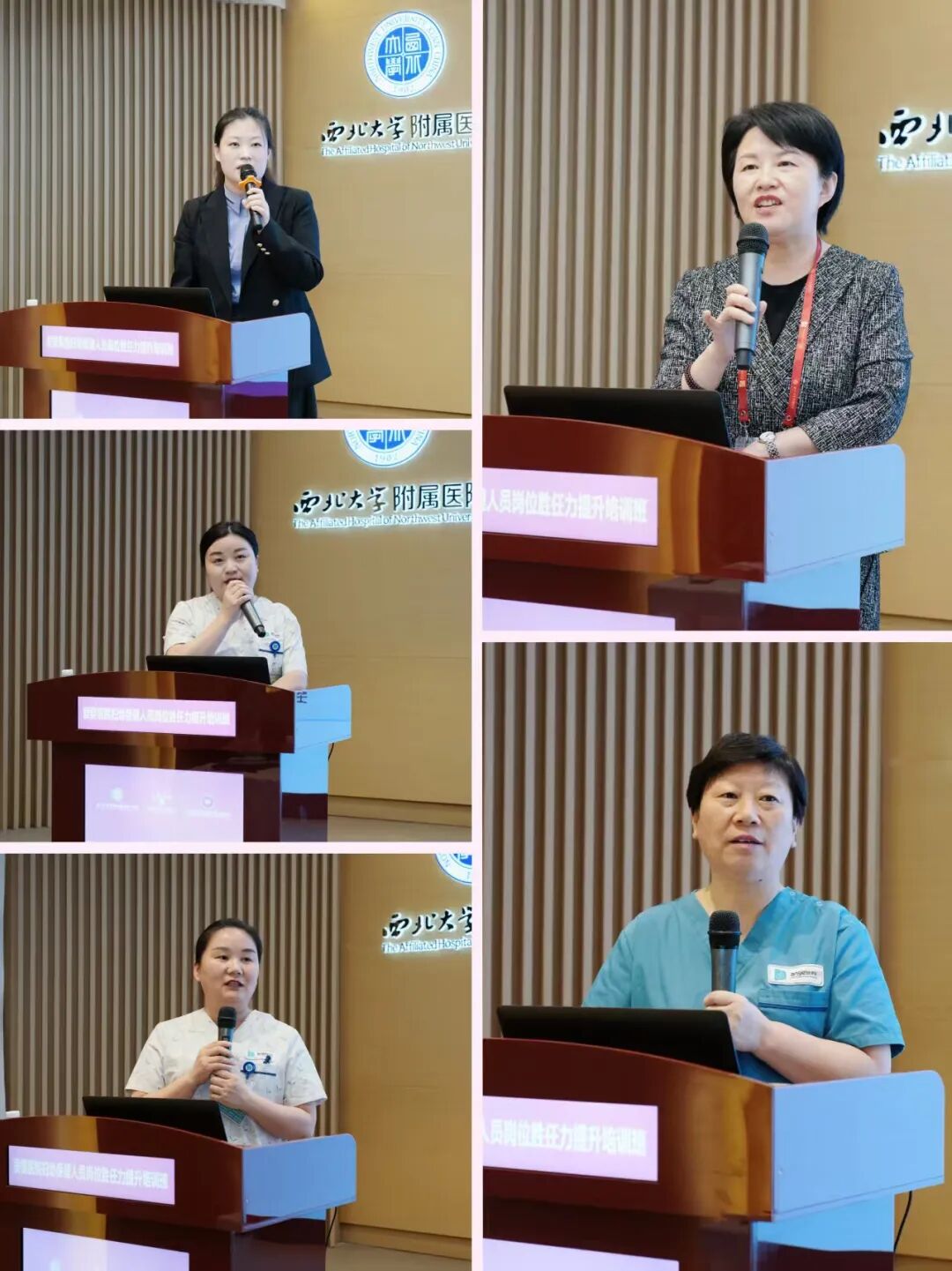 ▲授课专家:陕西省人民医院总护士长兼产科护士长杨春荣,西北大学附属安琪儿妇产医院新生儿科主任李和勤,西安市第四医院产科护士长张维娜,西北大学附属安琪儿妇产医院产房护士长张婵、产科护士长张莹