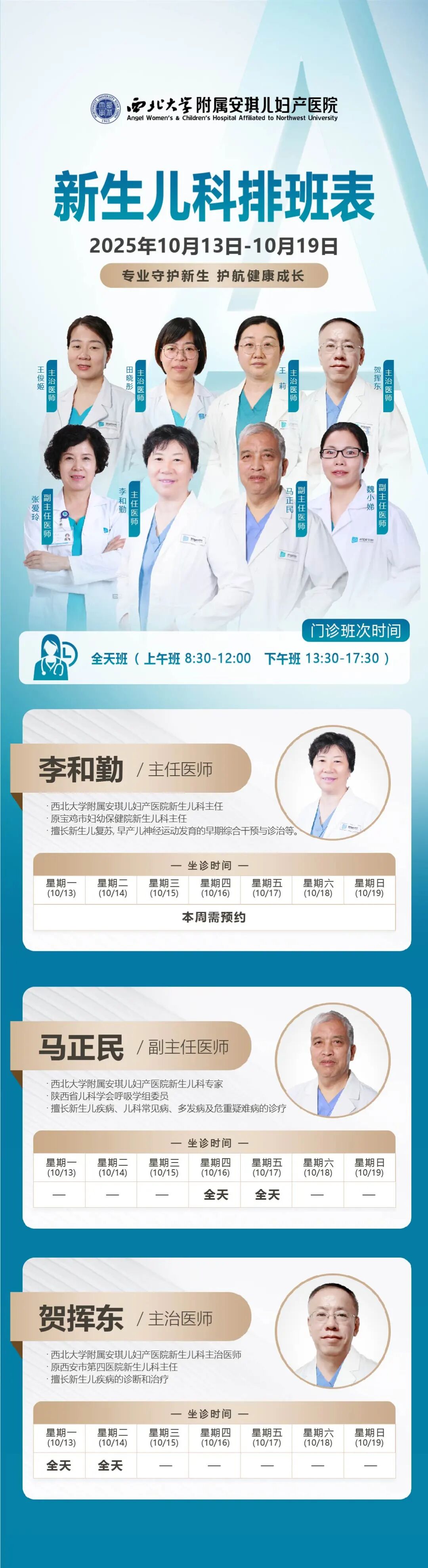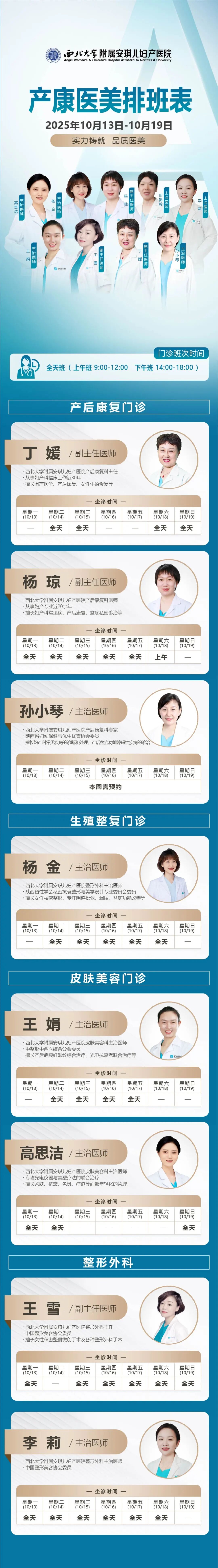 西安安琪儿妇产医院(10月13日至10月19日)专家坐诊时间表