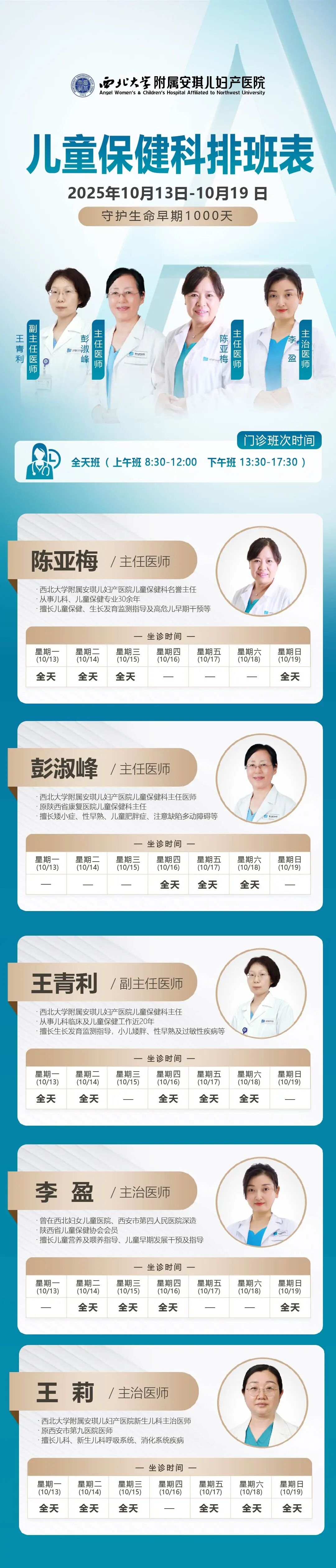 西安安琪儿国庆中秋双节假期门诊排班表来啦 请收好~