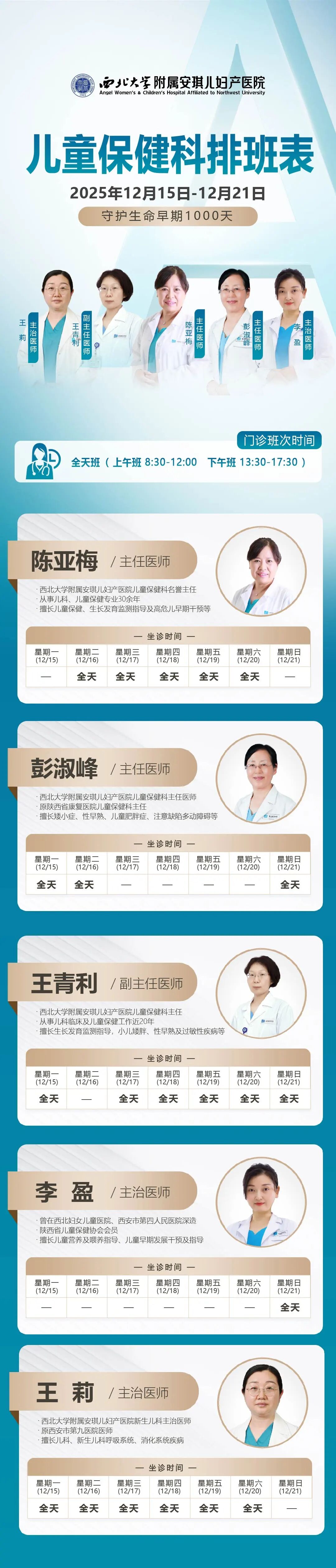 西安安琪儿妇产医院(12月15日至12月21日)专家坐诊时间表